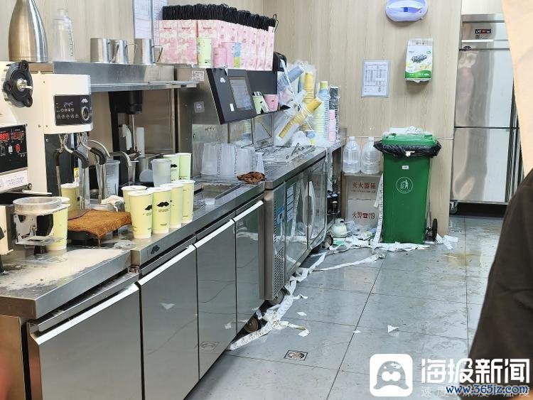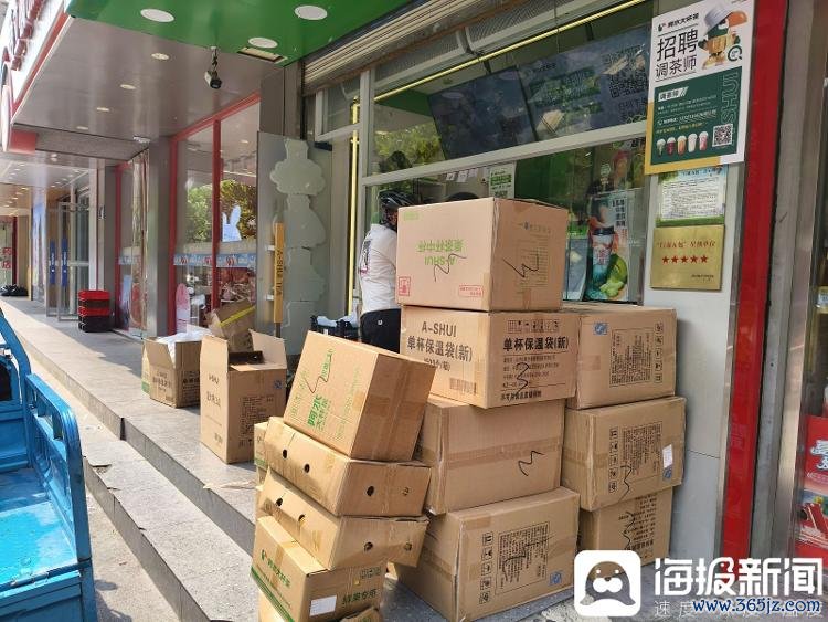 某茶饮店内,伙计一直忙着作念订单根底本不足打理操作台,成堆奶茶原材料只可暂时堆在门口