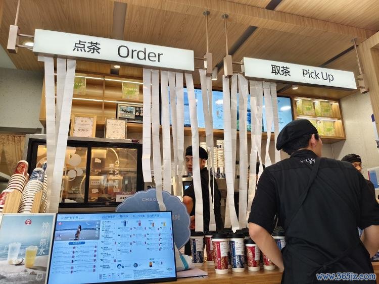 茶饮店内,已排成“瀑布”般的待制作订单催促着伙计的制作措施
