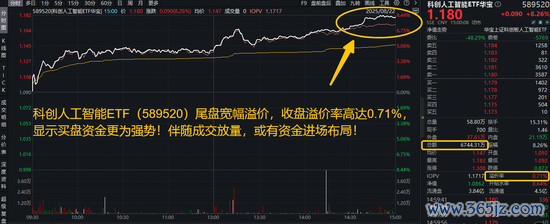 ETF放量险峻上市高点,或为资金买点信号!科创东说念主工智能ETF(589520)尾盘宽幅溢价,收盘溢价率高达0.71%,泄露买盘资金更为强势!陪同成交放量,或有资金进场布局!