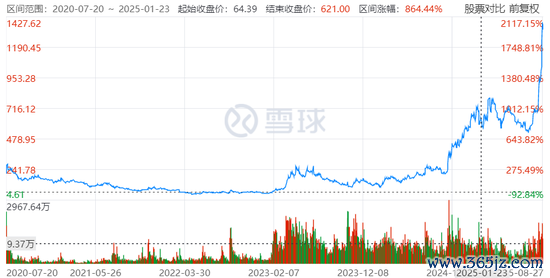 抑止8月27日收盘,寒武编年内涨幅已翻倍,尤其是在7月25日至8月26日历间,累计涨幅高达121.42%。自2022年低点算起,三年间涨幅高达28倍。寒武纪一跃成为千元芯片股,市值冲突6000亿元,被赋予“国产替代破局者”的扮装。